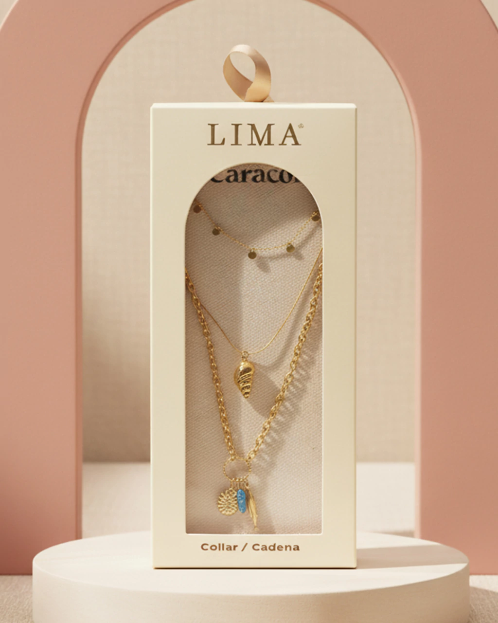 Inspirado en el mar, este collar le aporta un aire veraniego y fresco a tu look. De estilo layer, cuenta con tres largos de cadenas de distintos espesores y dijes colgantes que suman movimiento y personalidad. Incluye tope de seguridad para ajustarlo a la medida de tu cuello. Ideal para complementar desde un outfit relajado hasta uno más canchero.